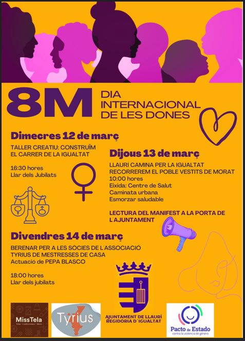 Las concejalías de igualdad y de cultura, junto a la asociación de Amas de casa Tyrius Llaurí, organizan una serie de actividades dentro de la campaña del 8 de marzo con el objetivo de empoderar a las mujeres de Llaurí .