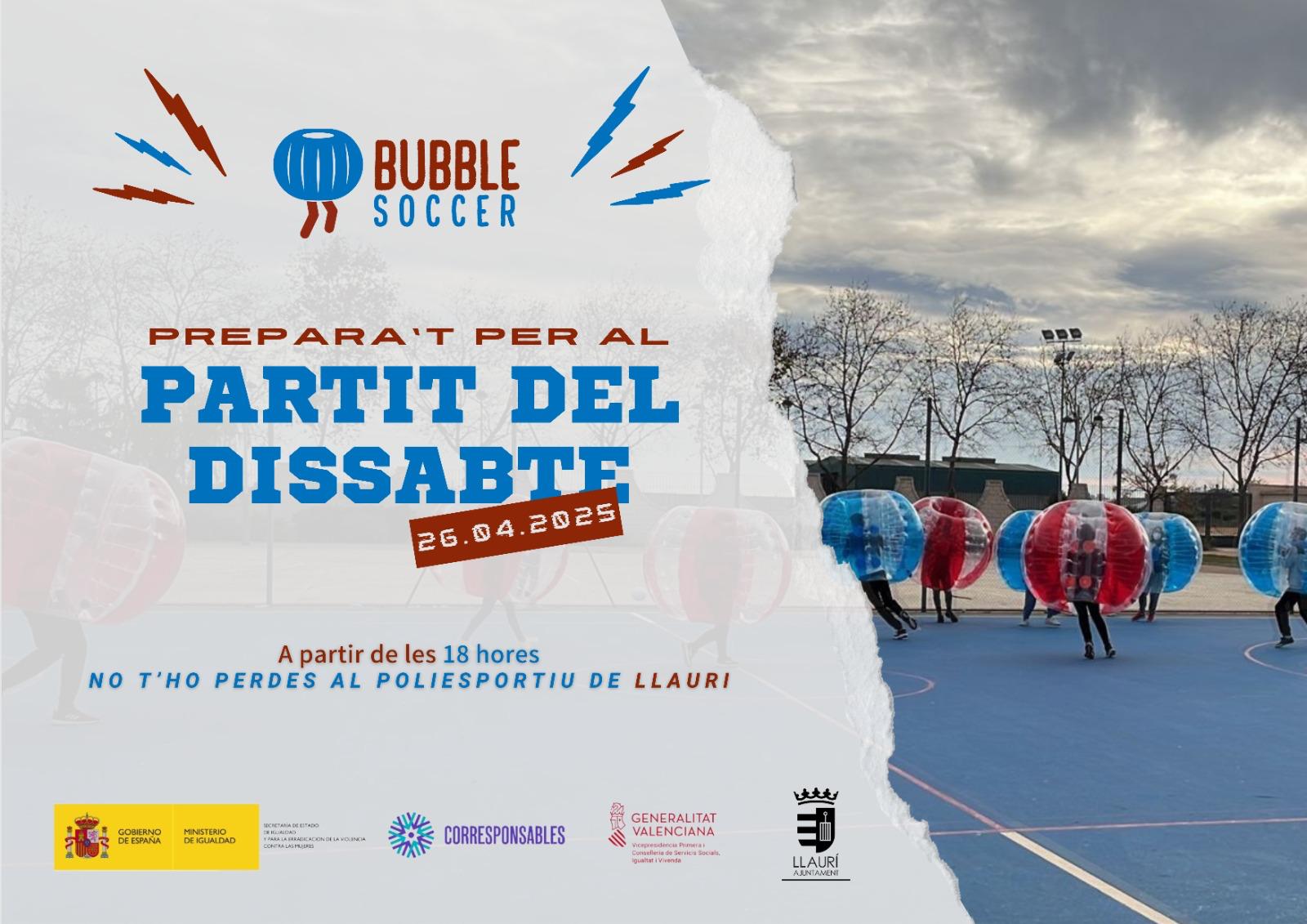 El próximo día 26-04-2025 al polideportivo municipal,   se realizará una actividad de “bubble soccer”, subvencionada por la Consellería de Servicios Sociales, Igualdad y Vivienda, dentro del Pla Corresponsables 2024.