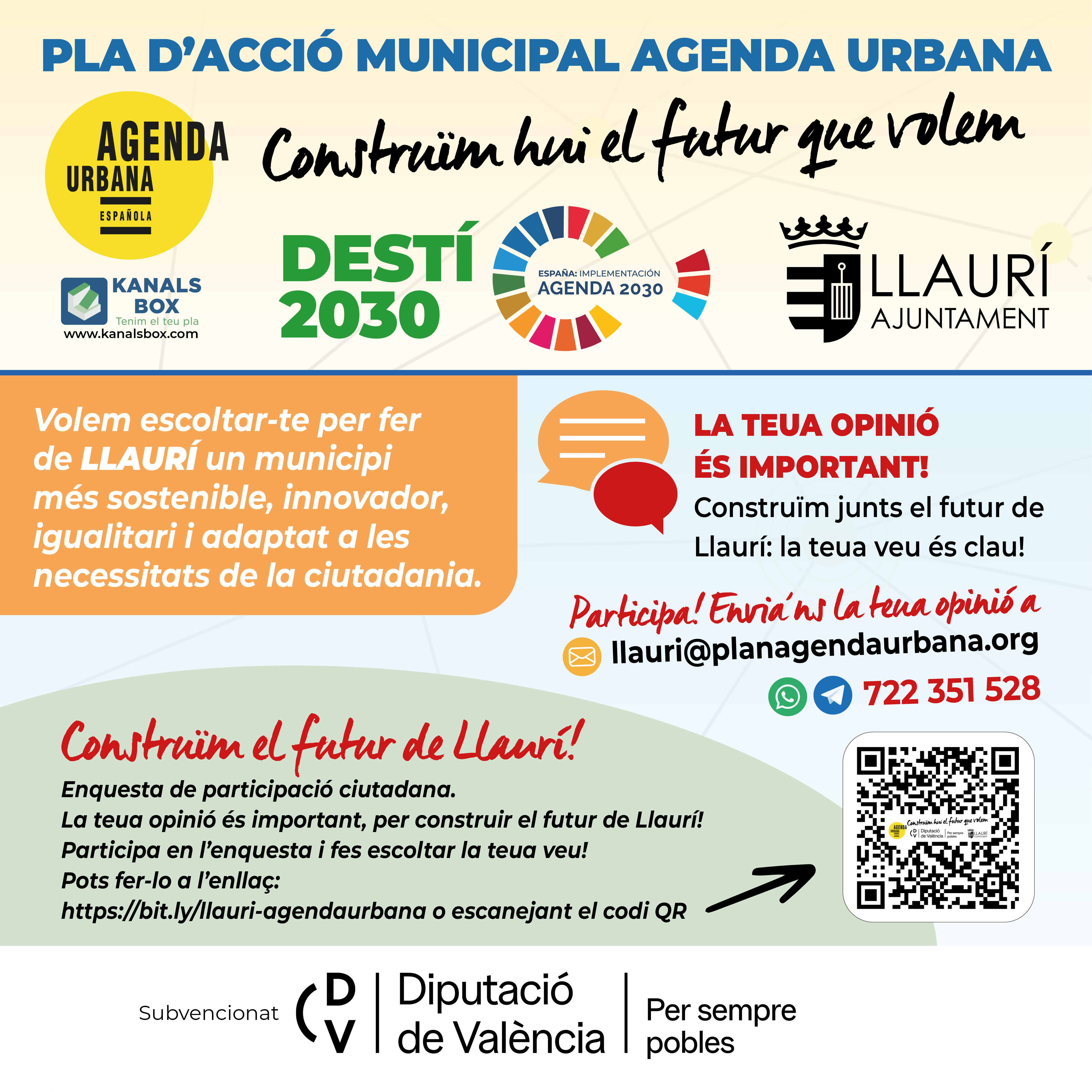 ENCUESTA PARTICIPACIÓN CIUDADANA AGENDA URBANA LLAURÍ julio 24, 2025 Anuncios Twitter Facebook Google+ Pinterest LinkedIn Tumblr Email