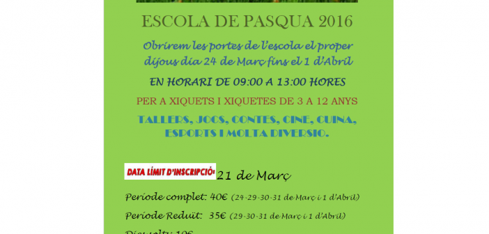 ESCUELA DE PASCUA 2016 marzo 14, 2016 Anuncios Twitter Facebook Google+ Pinterest LinkedIn Tumblr Email