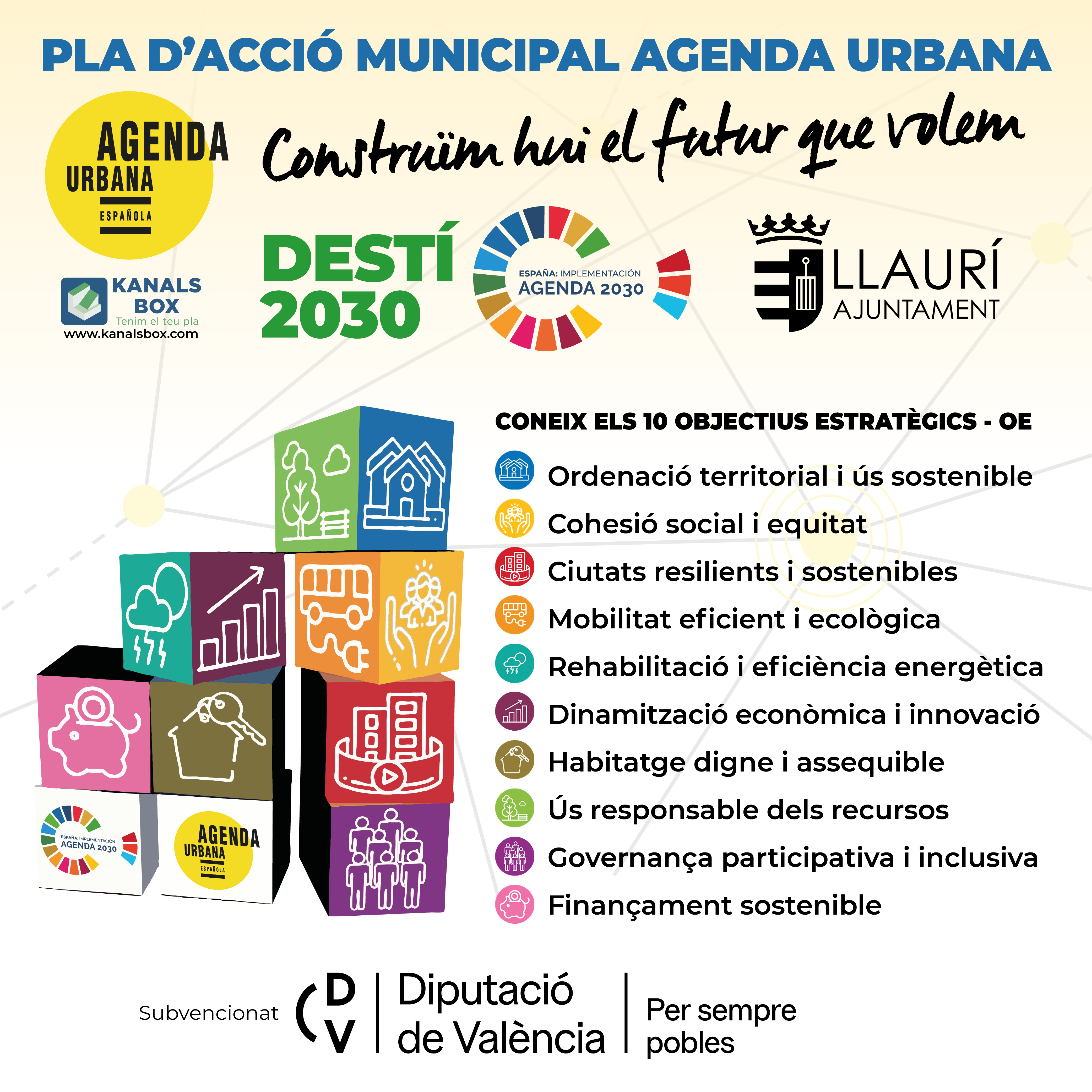 El Ayuntamiento de Llaurí ha recibido una subvención de 6.900,00 € de la Diputación Provincial de València, destinada a la elaboración del Plan de Acción de la Agenda Urbana. Esta ayuda forma parte de la convocatoria impulsada por la Diputación para promover la planificación estratégica en los municipios y avanzar hacia un desarrollo sostenible, inclusivo e integrador alineado con los objetivos de la Agenda Urbana Española.