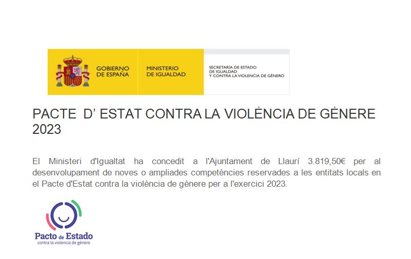 PACTE D’ESTAT CONTRA LA VIOLÈNCIA DE GÈNERE 2023 gener 10, 2024 Anuncis, Edictes Twitter Facebook Google+ Pinterest LinkedIn Tumblr Email