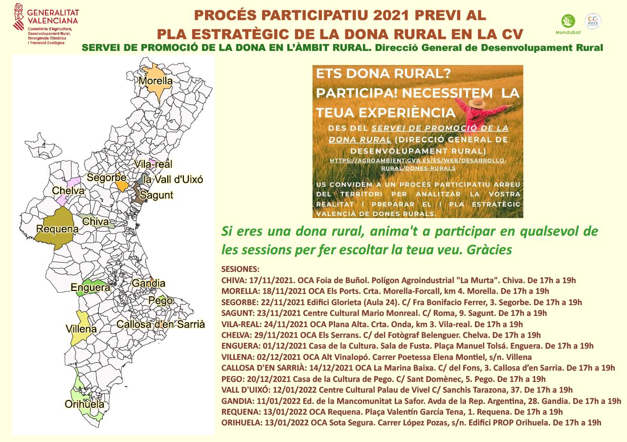 PROCÉS PARTICIPATIU 2021 DE LA DONA EN L’ÀMBIT RURAL desembre 1, 2021 Anuncis Twitter Facebook Google+ Pinterest LinkedIn Tumblr Email